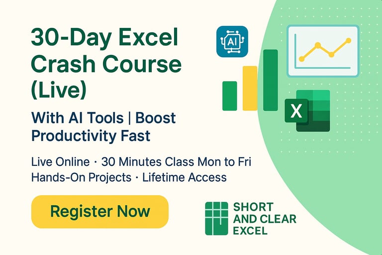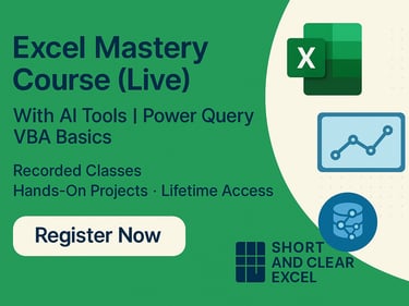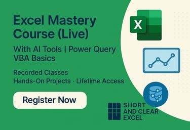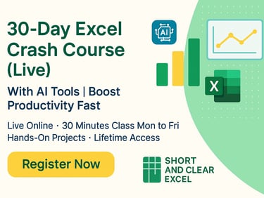 Welcome to Short and Clear Excel, your go-to resource for concise tutorials, tips, and premium courses designed to enhance your Excel skills efficiently and effectively.